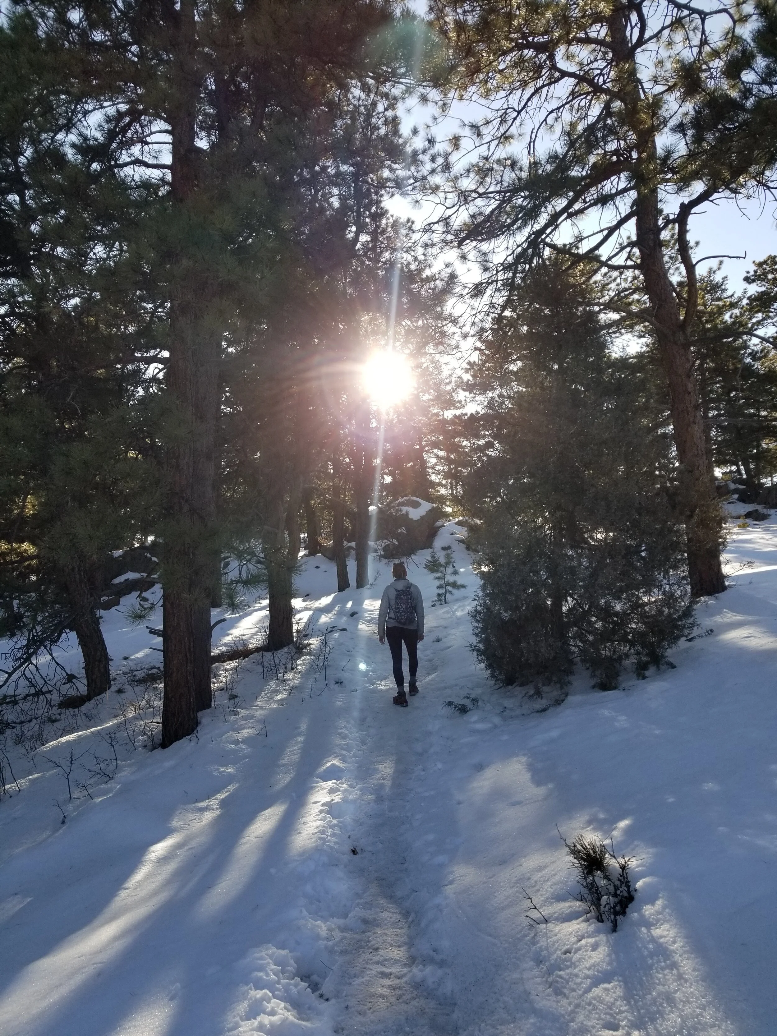 When I visited Dasha a year ago, we hiked Realization Point and explored Red Rocks. This time there was snow on the ground and an opportunity to explore some real Colorado hiking.