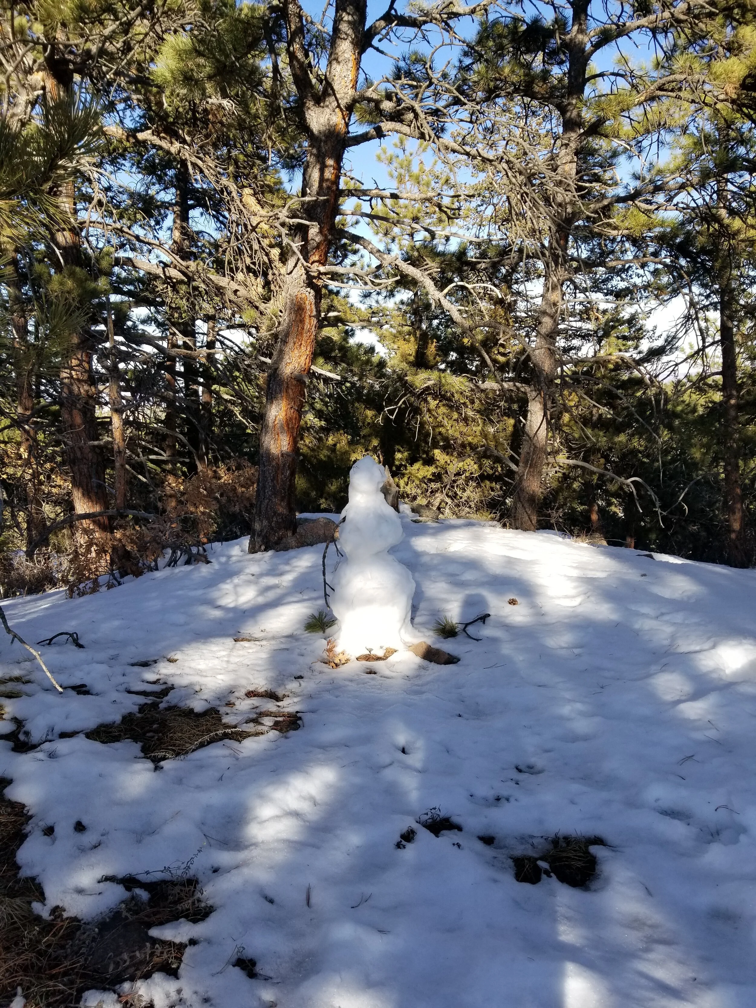 Walking up Tower Trail, we found someone’s partially melted snow creation. I decided to fix up my new friend!