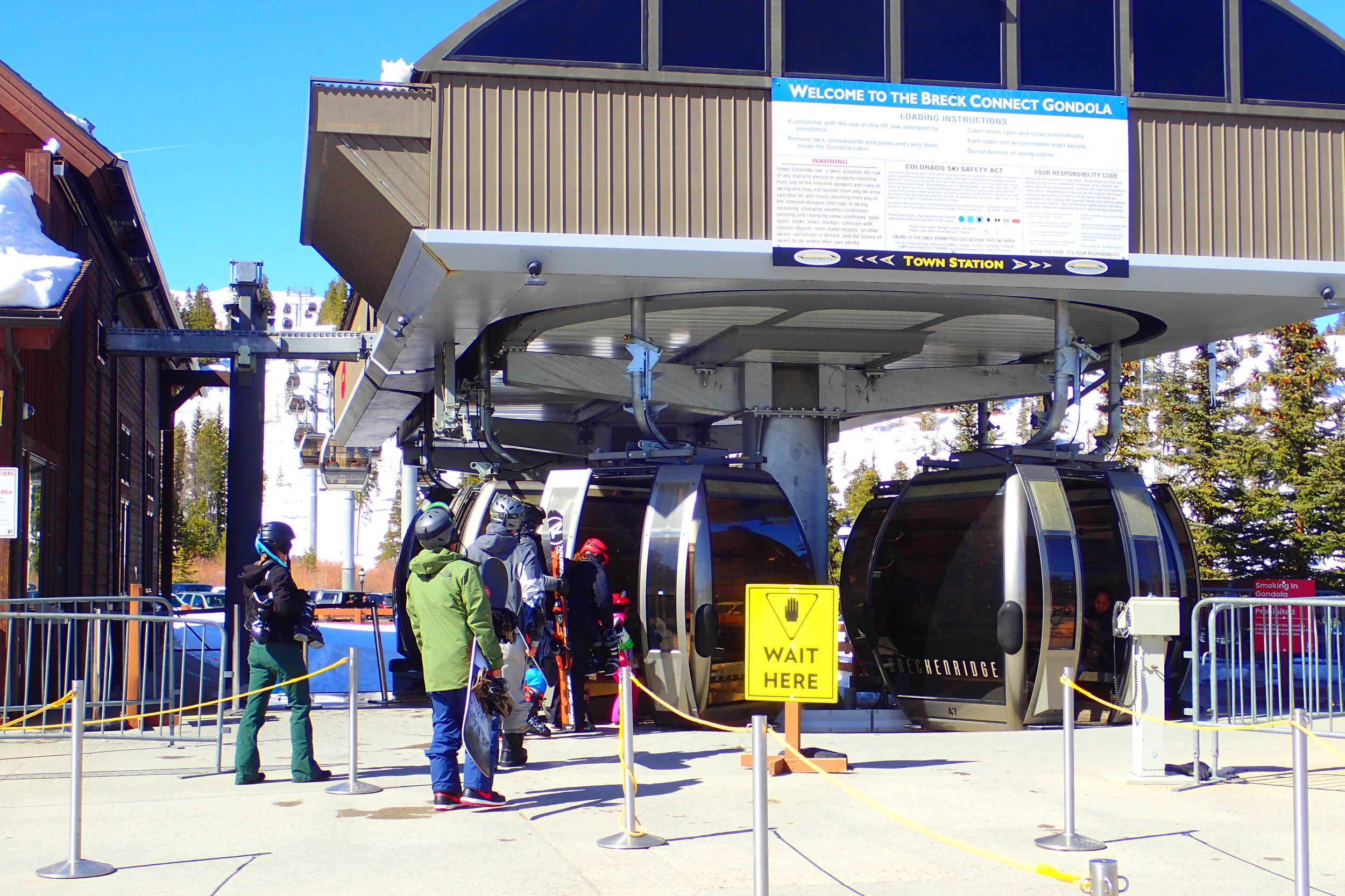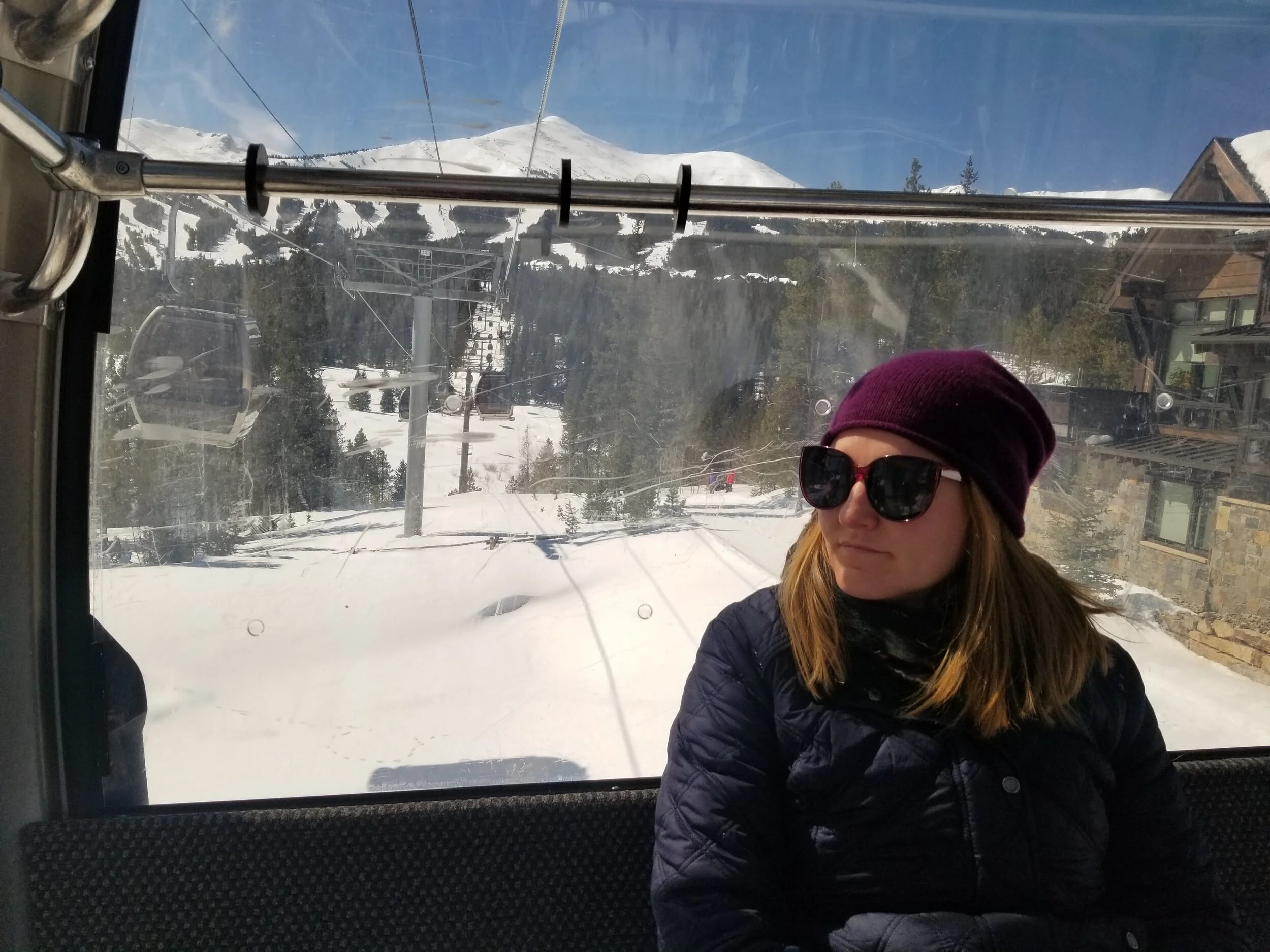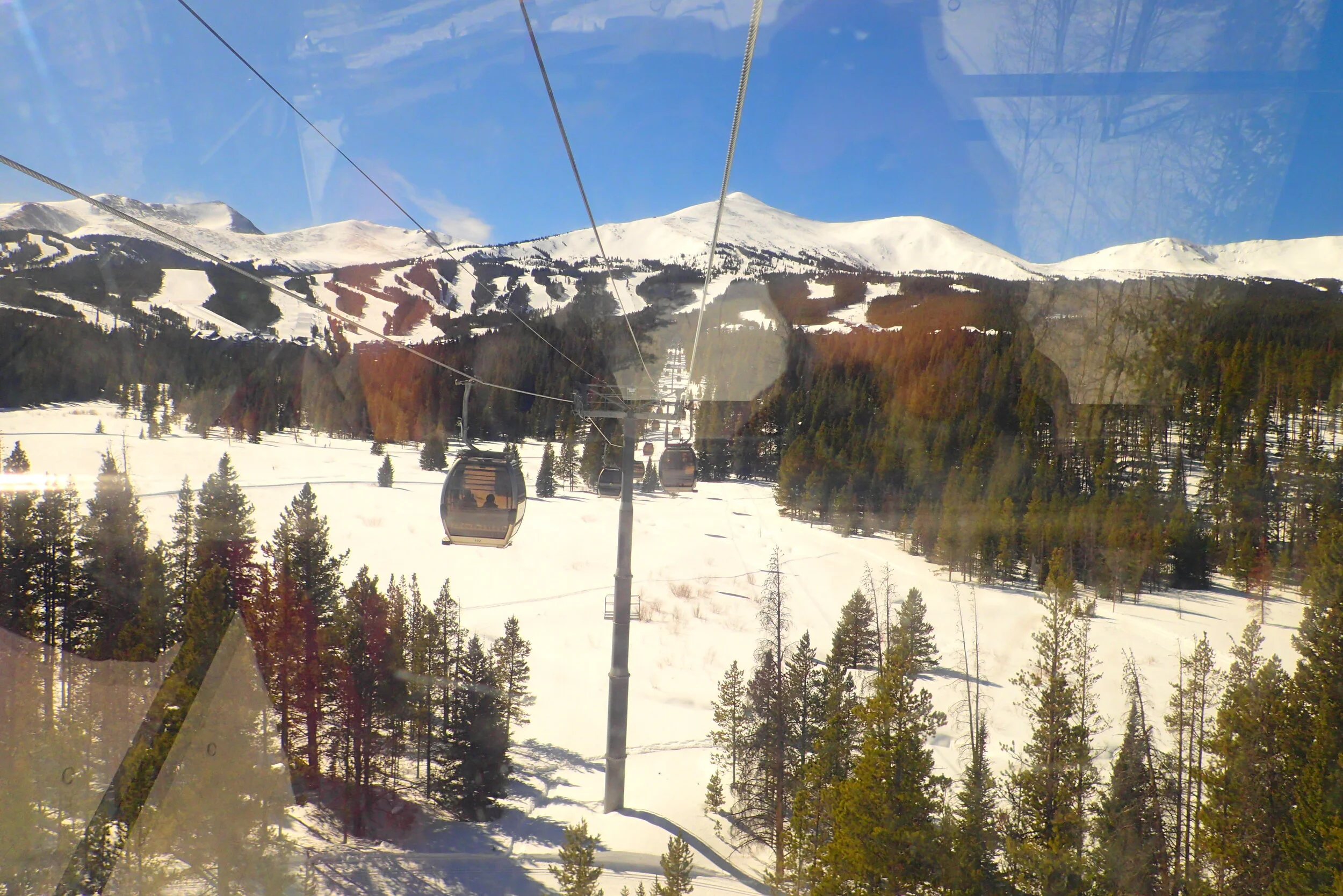 We visited the Welcome Center to get a map and some information on things to do in the area. We learned that you don't have to be a skier or snowboarder to enjoy the slopes. Dasha and I were able to ride the BreckConnect gondola for free up to Peak 8.