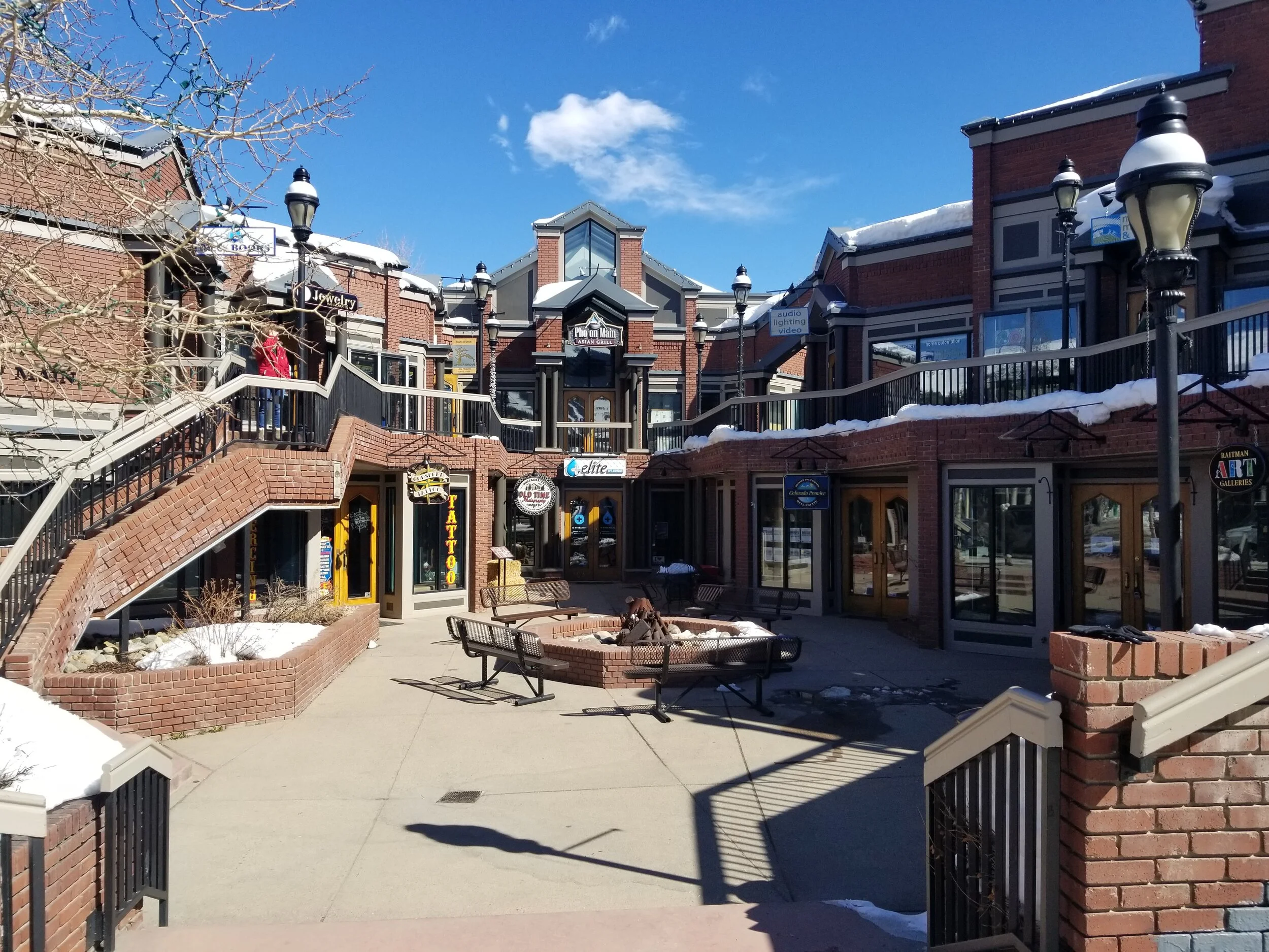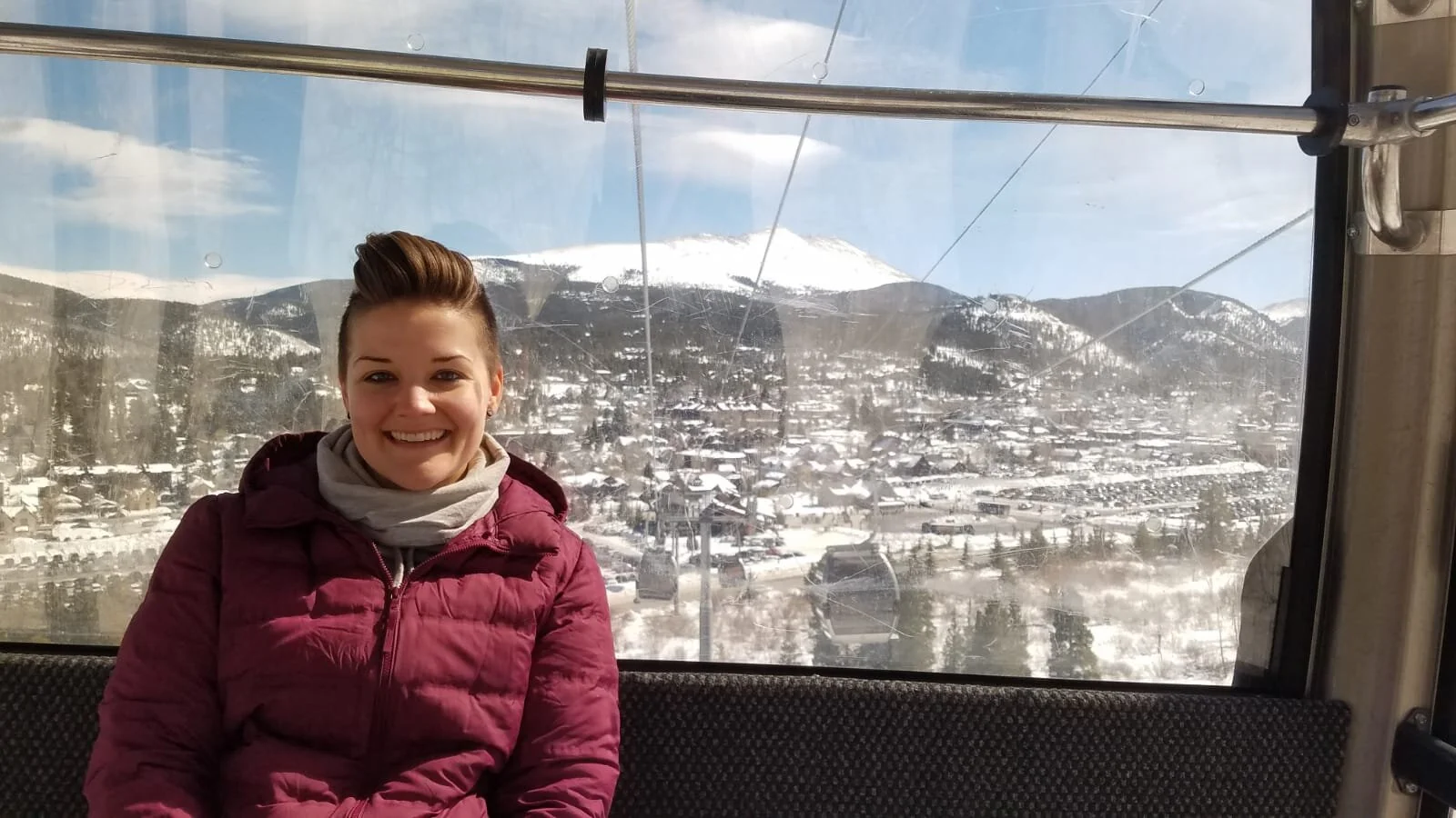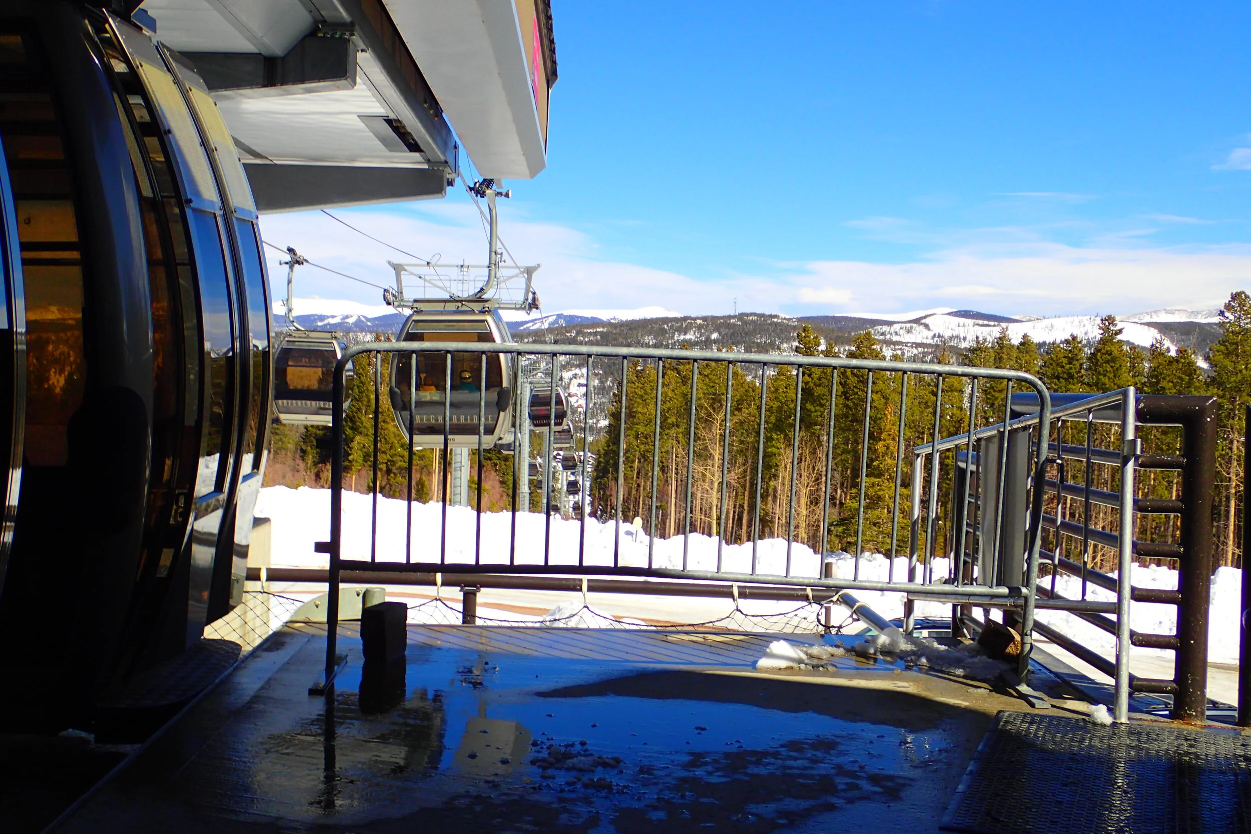 We visited the Welcome Center to get a map and some information on things to do in the area. We learned that you don't have to be a skier or snowboarder to enjoy the slopes. Dasha and I were able to ride the BreckConnect gondola for free up to Peak 8.