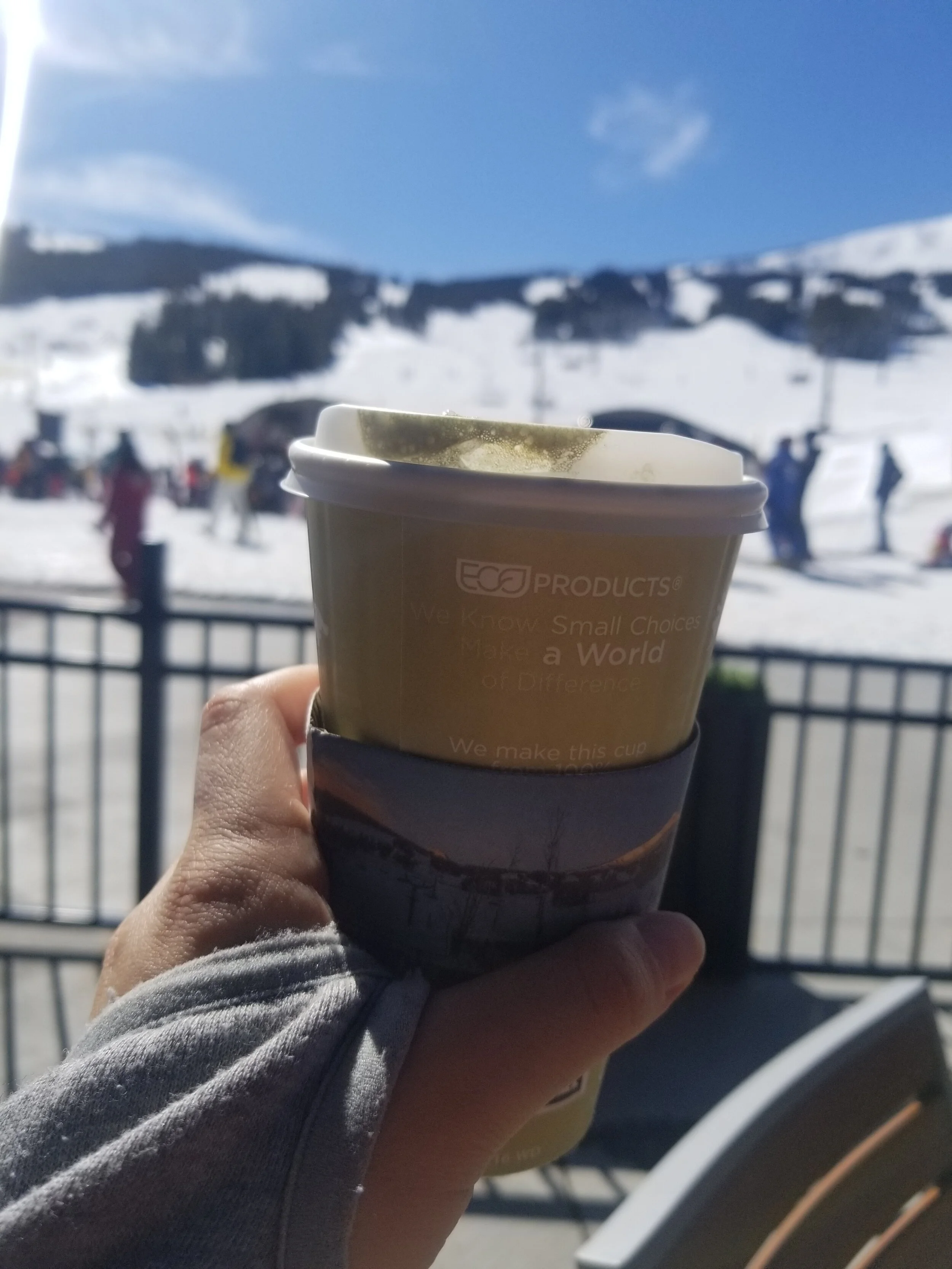At Peak 8, we wanted to have a sit-down lunch overlooking the slopes. Robbie's Tavern was too long of a wait for us so we opted for a quicker meal through the cantina next door. We had packaged sandwiches heated up for us and matcha tea as we watched people coming down the slopes. Definitely some good people watching!
