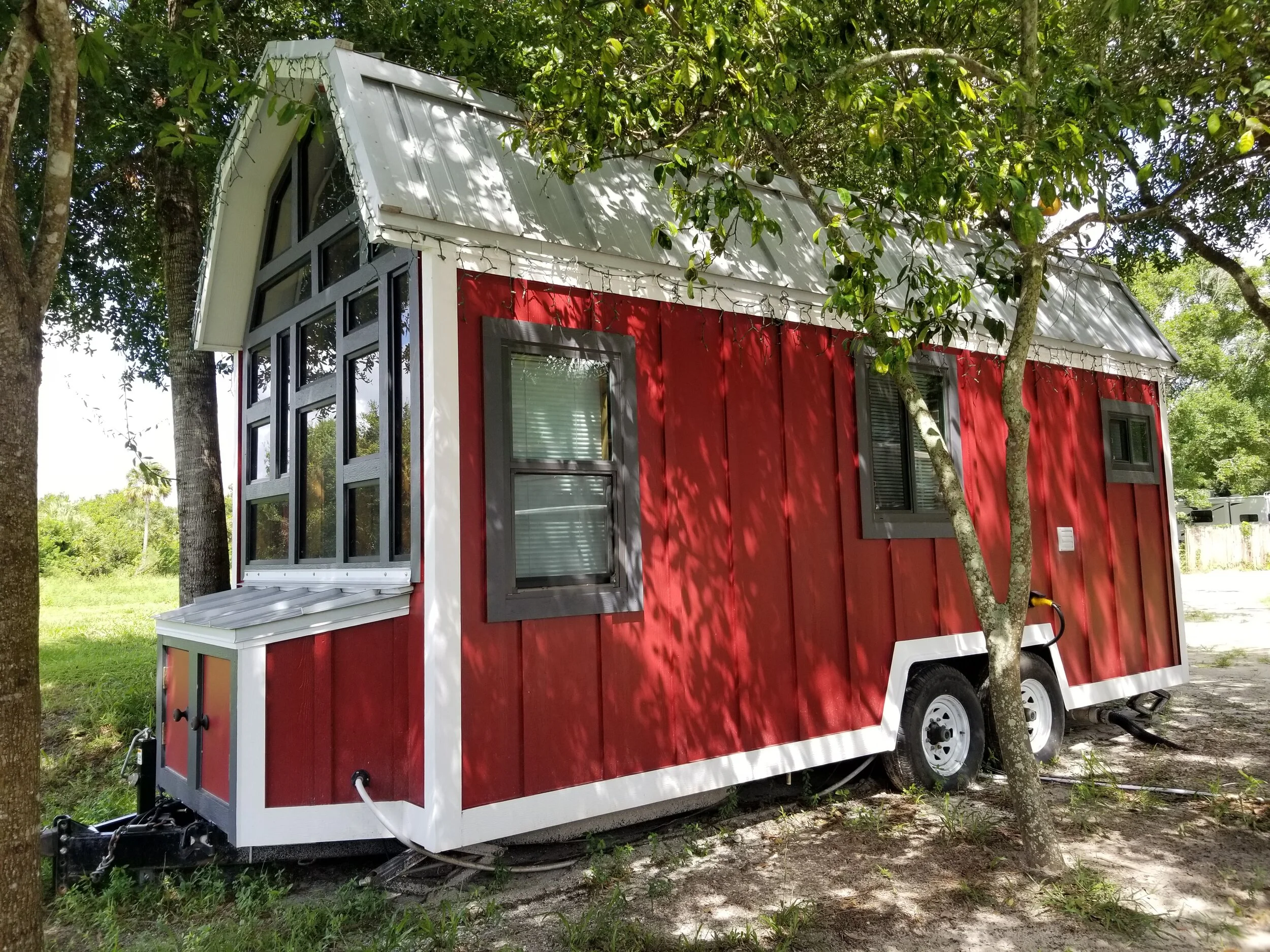 I absolutely fell in love with this tiny house! The tiny house was designed by the owner, Dana, and her partner who built it. It's in the shape of a barn—a little red barn. So cute.