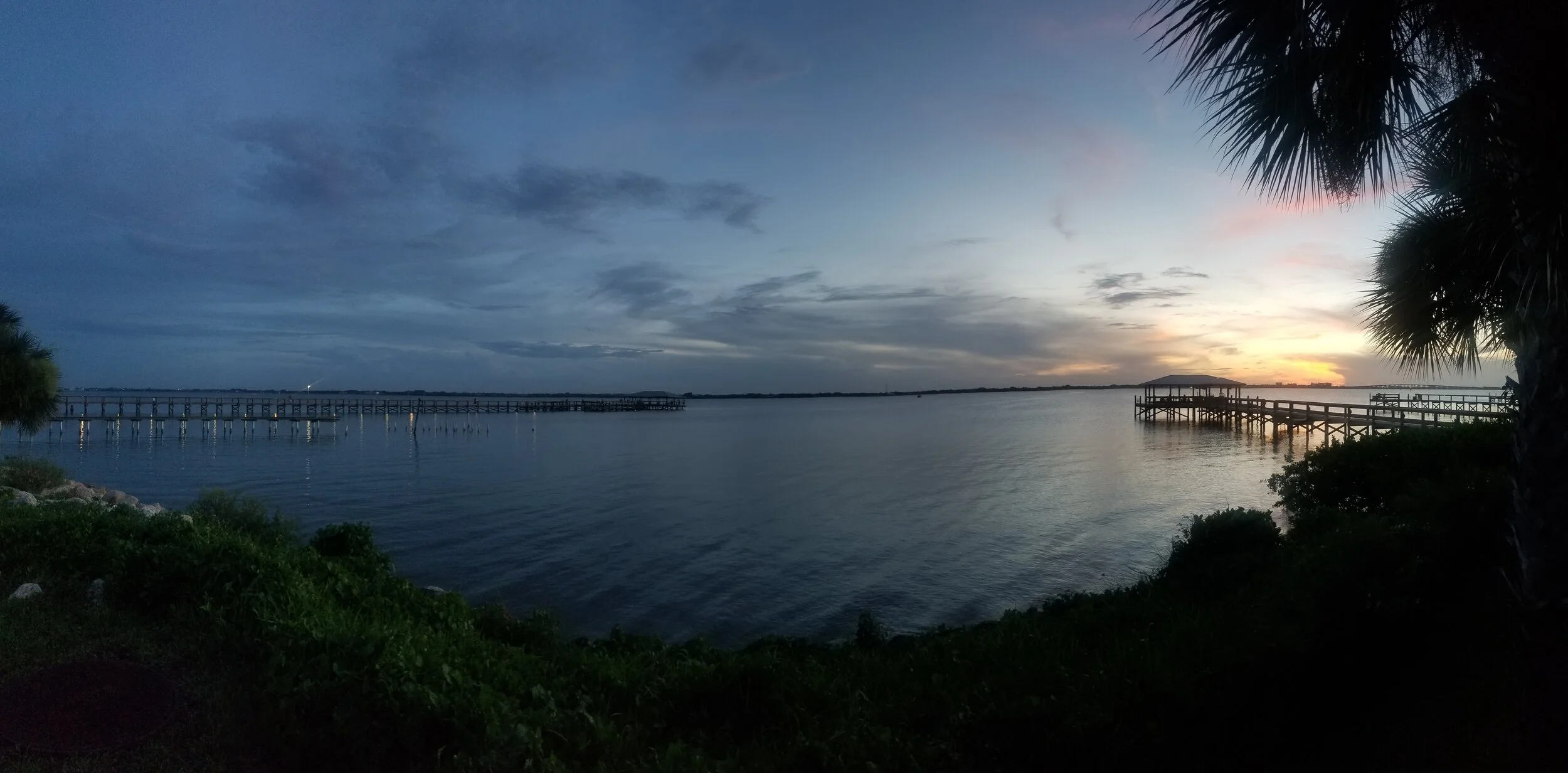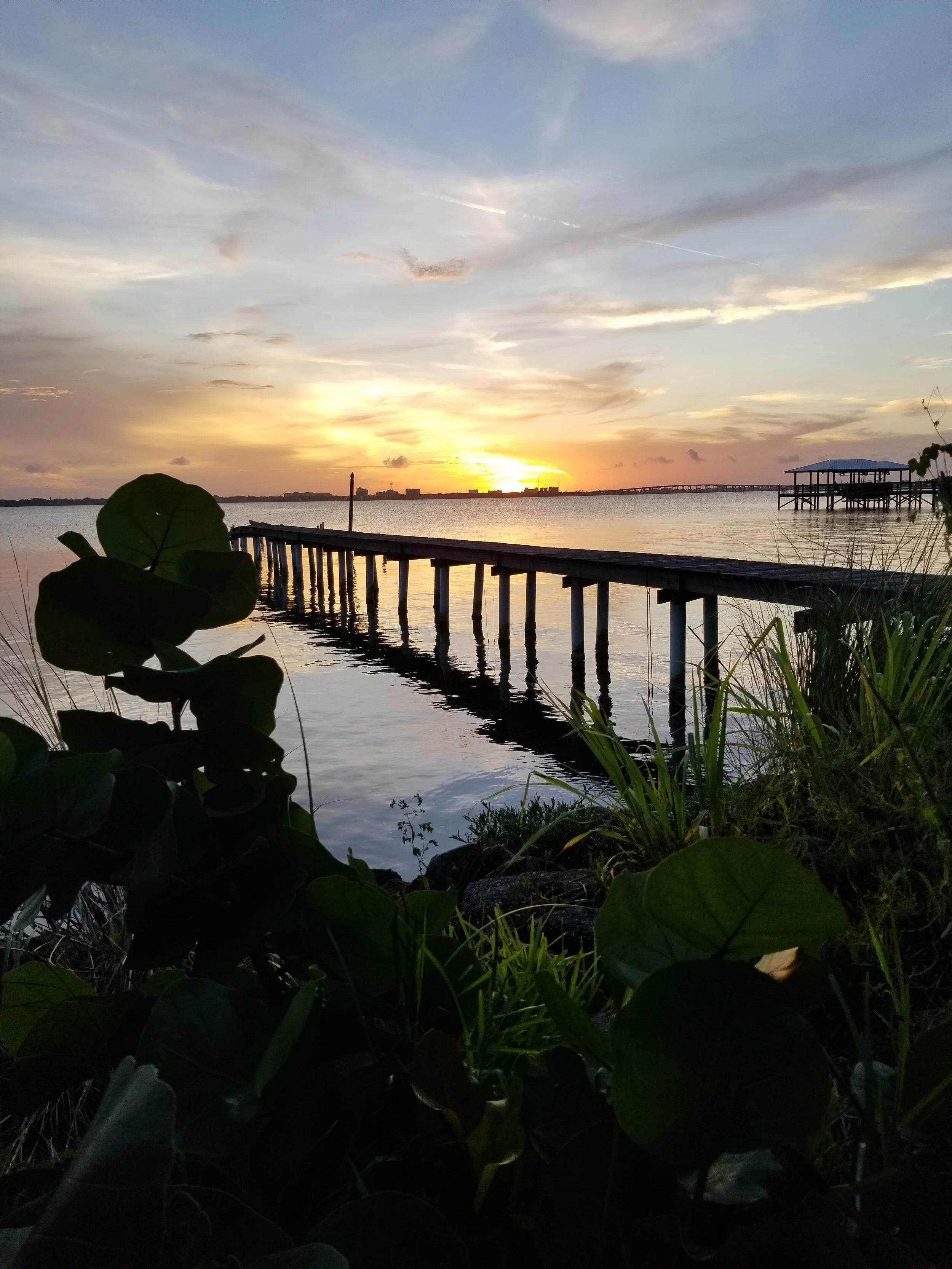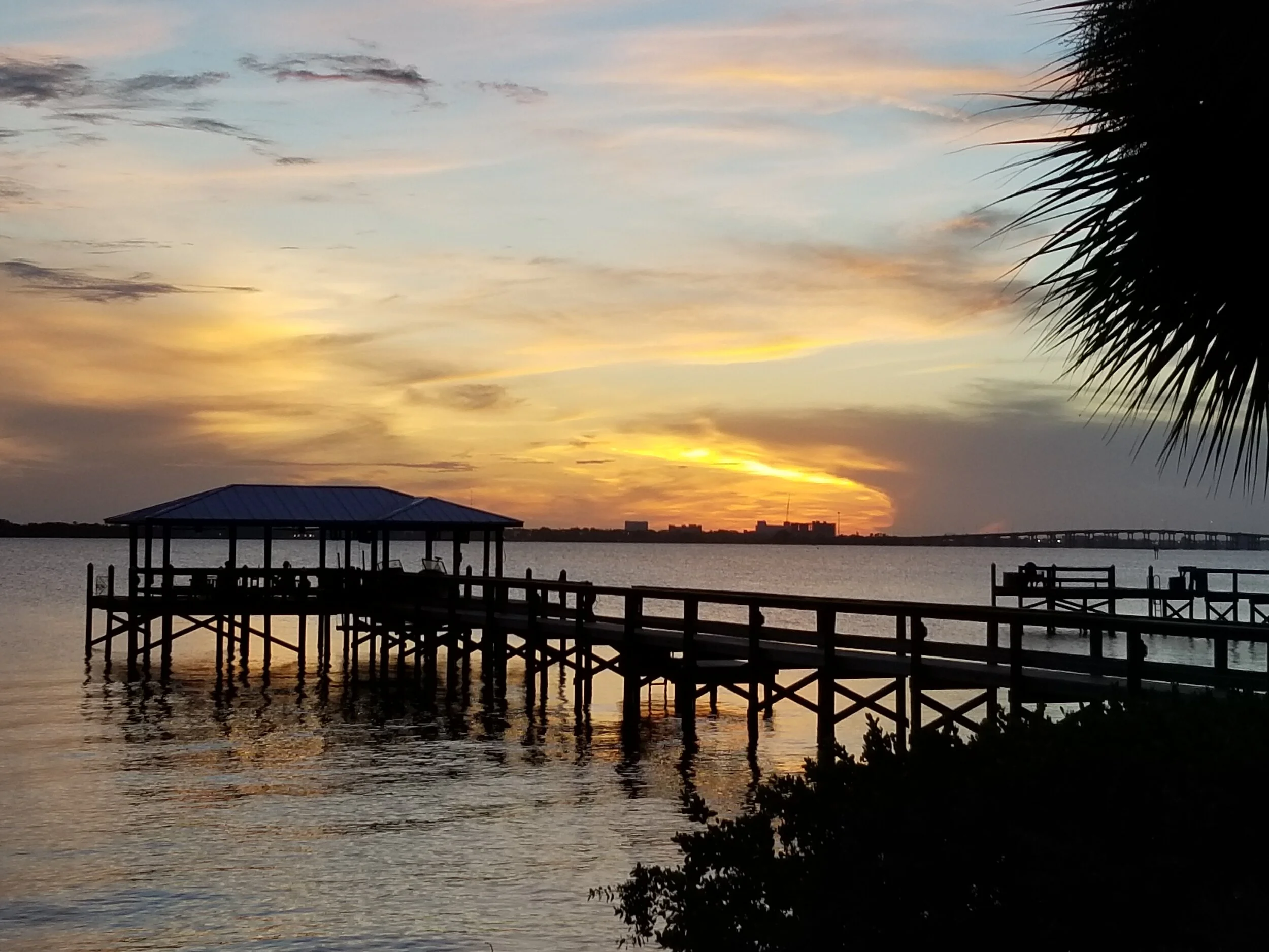 I spent 3 nights in Melbourne. Two of those nights, I had the opportunity to take a walk at sunset. The sunsets on the East coast of Florida are not usually anything to get too excited about. The barrier islands provide a nice view, however. I could view the sunsets from the West shore of the barrier island in Melbourne.