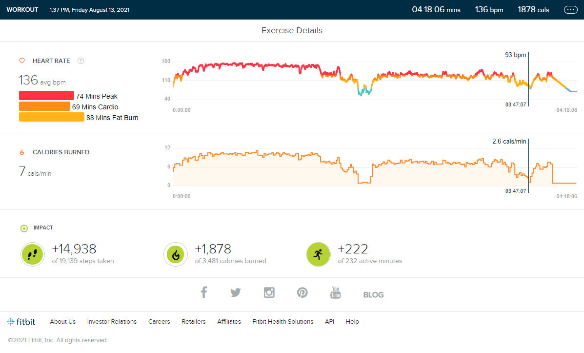 This was a serious workout especially after many months of living in Florida on flat ground (without any natural hills even!). Since it was so intense, I thought it would be fun to share the hike as tracked by my Fitbit.