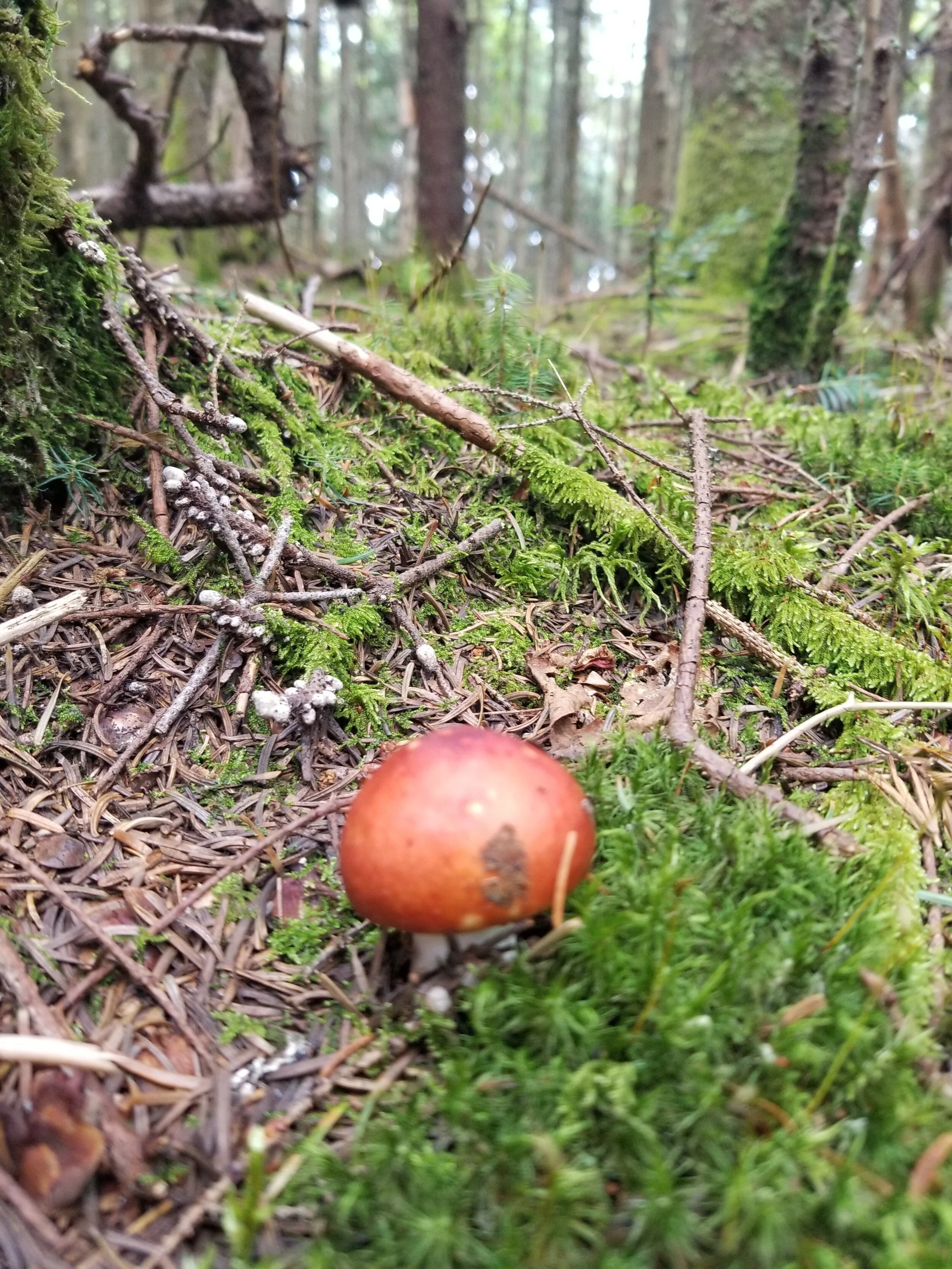 The trail is mostly forest views all the way up. There are no mountain views because the path is so shaded. This does afford lots of fungi to grow. I enjoyed spotting and photographing them along the way.