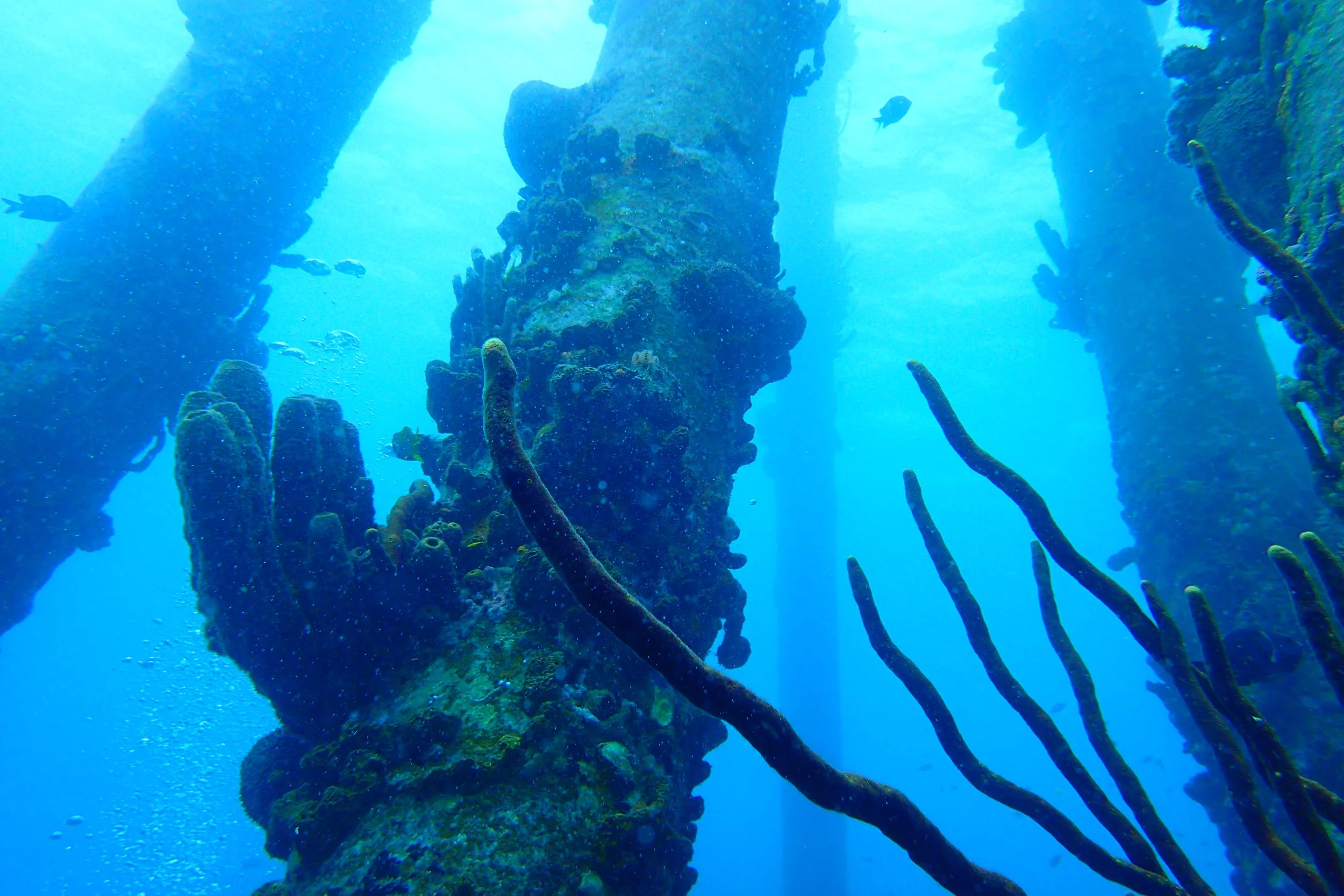 The Salt Pier was such an interesting and active dive site because of the many wooden pegs that shoot down into the water to hold up the pier. These loomed upward while underwater and had tons of life swarming around them below. It was by far my favorite dive of the trip!