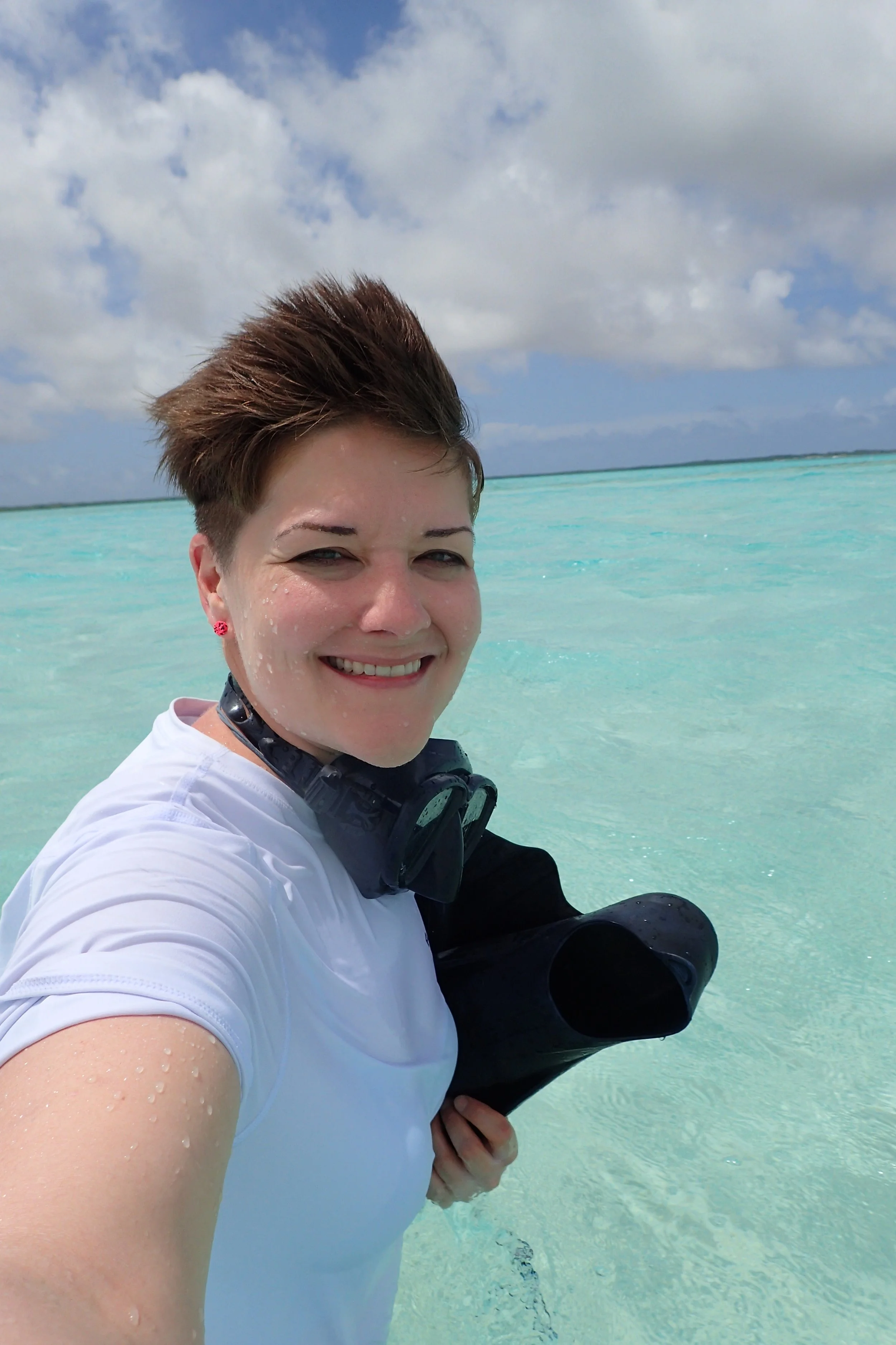 The challenge walking for 30+ minutes in waist-deep water out to the pristine reef in Lac Bay.