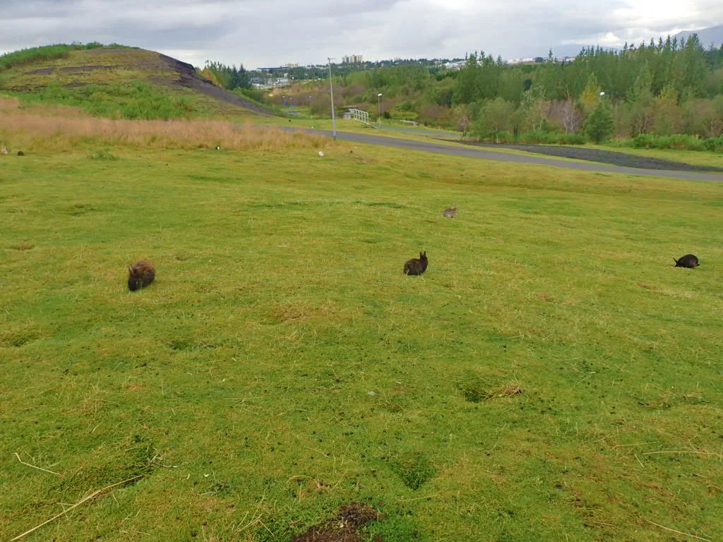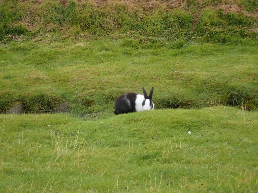 Upon arrival at Einar’s place, we sat and chatted about plans for my stay. He wanted to take me to a few places nearby. We walked to what I like to call Bunny Hill—a grassy slope dotted with holes dug by nearly 100 rabbits hopping about freely. They allow you to get very close and even feed them as one family was doing when we were there. Einar said they are wild but a man living on the hill feeds them regularly.