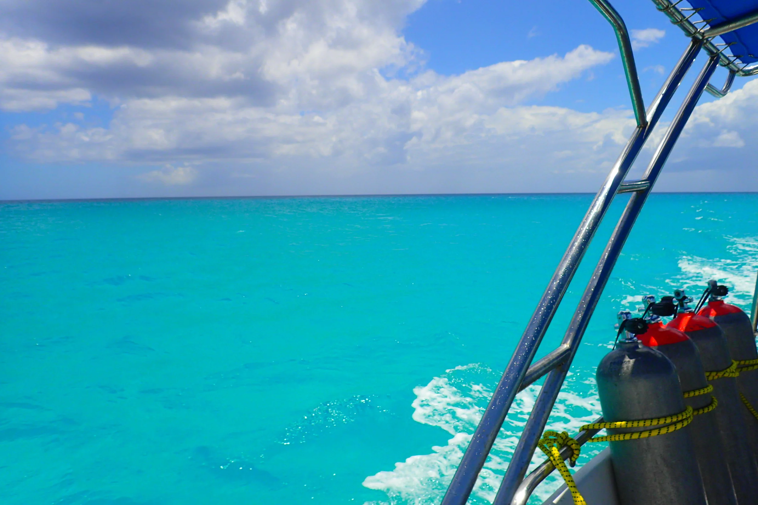 Iris, Ang, and I boarded the dive boat and we took off onto the clear, blue waters.