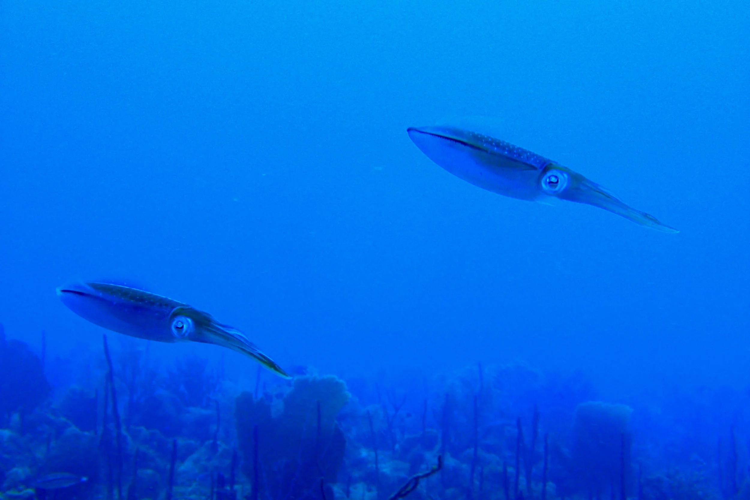 The only time I ever encountered squid was at night while snorkeling in the Florida Keys. And that was only one squid that was quite far away from me when I saw it.